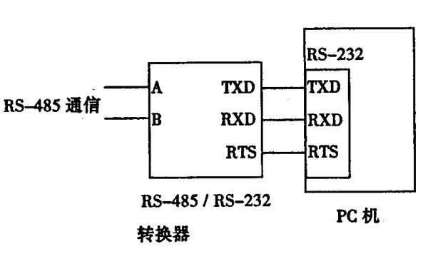????選擇性速斷過流保護(hù)系統(tǒng)主機(jī)由PC機(jī)、RS-485/ RS-232轉(zhuǎn)換器組成。系統(tǒng)主機(jī)電路框圖如圖4所示。