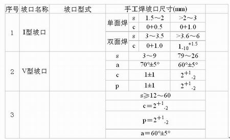 焊接常用的坡口型式和尺寸