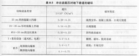 注:當(dāng)ΔΡ為(0.3~0.4)X105/m2時(shí),氣流速度達(dá)60~80m/s,夾雜著碎石加重了對(duì)人體的危害。