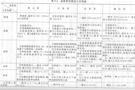 油庫常用泵的工作性能見表5—2。