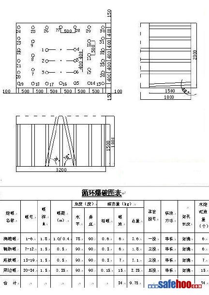 ???? 五、炮眼布置三視圖(比例:1:50 單位:mm)