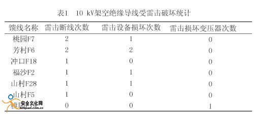 由表1的統(tǒng)計數(shù)據(jù)看出,2004~2005年兩年里,發(fā)生雷擊事故引起的擊斷絕緣導線共8起,對雷擊后絕緣子爆裂、隔離開關(guān)引線被擊斷等事故5起,雷擊損壞變壓器1起。雷擊多發(fā)于每年的6~9月份的臺風雷雨季節(jié)。而發(fā)生的雷擊事故集中在桃園F7、桃園F19(兩路饋線共4起)、芳村F6(2起)、山村F28(4起)、福沙F2(2起)。
