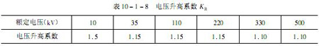 KR—電壓升高系數(shù),其大小見表10-1-8。