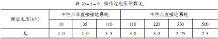 K o—內(nèi)過電壓倍數(shù),其大小見表10-1-9。