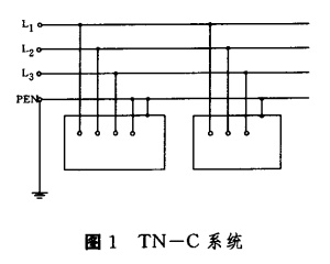 ①TN-C系統(tǒng)(三相四線制),該系統(tǒng)的中性線(N)和保護(hù)線(PE)是合一的,該線又稱為保護(hù)中性線(PEN)線。它的優(yōu)點(diǎn)是節(jié)省了一條導(dǎo)線,但在三相負(fù)載不平衡或保護(hù)中性線斷開(kāi)時(shí)會(huì)使所有用電設(shè)備的金屬外殼都帶上危險(xiǎn)電壓。在一般情況下,如保護(hù)裝置和導(dǎo)線截面選擇適當(dāng),TN-C系統(tǒng)是能夠滿足要求的(見(jiàn)圖1)。