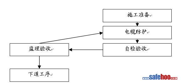 施工程序為:施工準(zhǔn)備→電纜防護(hù)→自檢驗收