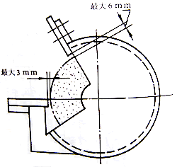 砂輪與防護(hù)罩之間的距離是保證防護(hù)罩任何部位不得與砂輪裝置各運(yùn)動部件接觸,防護(hù)罩開口邊緣與砂輪卡盤外側(cè)面間隙應(yīng)小于