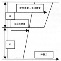 4.1公式1:α=F/m(加速度=外力/質(zhì)量),圖3顯示了公式1的緩沖原理,即改變作用在運動部件上的彈簧力。在閥片剛開啟時,僅僅由關(guān)閉彈簧提供彈簧力,彈簧力的增加是線性的。如果利用緩沖彈簧直接作用在緩沖片上,將作用在緩沖片上的彈簧力傳遞給閥片,就能增加作用在閥片和緩沖片上的彈簧力,這樣也必將相應降低閥片的加速度。