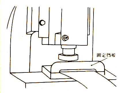 (2) 如圖7所示為固定在凹模上的防護(hù)柵欄。它由開(kāi)縫的金屬板制成,可從正面和側(cè)面將危險(xiǎn)區(qū)封閉起來(lái),在兩側(cè)或前側(cè)開(kāi)有供進(jìn)退料用的間隙。使用柵欄時(shí),其橫縫必須豎直開(kāi)設(shè),以增加操作者的可見(jiàn)度和減輕視力疲勞。