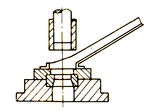如圖2所示,它也是根據(jù)制件的不同形狀而設(shè)計(jì)制造的,操作簡(jiǎn)單方便,勞動(dòng)強(qiáng)度不高,適用于鉗夾較厚的或表面積較大的、重量在0.5kg以上的各種沖壓制件。