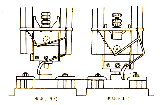 如圖20所示,它與圖21所示裝置的功能基本相同,又稱拔手保護(hù)裝置。一般用于1600kN左右、行程次數(shù)少的設(shè)備上。
