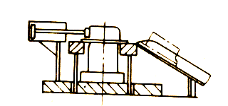 本裝置適用于630kN以下的各種小型開式壓機(jī)。它結(jié)構(gòu)簡單、制造安裝方便、安全可靠、不影響生產(chǎn),對某些零件還可作簡易退料裝置使用。本裝置的缺點(diǎn)是易打痛人手。由于小型壓力機(jī)的滑塊運(yùn)動次數(shù)在每分鐘60次以上,所以擋板的擺動速度快,使工人的雙眼易疲勞,對于送料時間較長的零件不宜使用。因此,在擋板與手可接觸處必須用軟質(zhì)材料包扎,防上打痛人手。