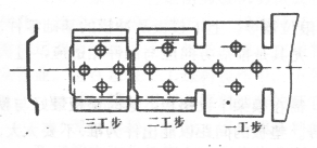 (2) 多工位連續(xù)模 如圖29和圖30所示是用多工位連續(xù)模加工的沖壓件坯料圖。