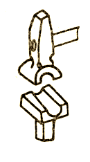 型錘主要用來(lái)卡脖壓槽,有時(shí)也用來(lái)加快拔長(zhǎng)或增寬工序的進(jìn)行。型錘上下兩個(gè)部分(圖8):上型錘裝有木柄,供握持用;下型錘帶有方形尾部,用以插入砧面上的方孔內(nèi)將其固定。