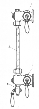 1―汽旋塞 2―玻璃管 3―水旋塞 4―排水旋塞