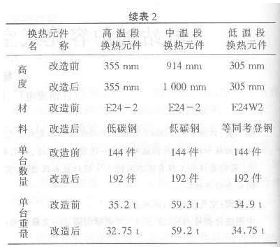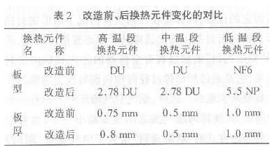 ? ②改造前后換熱元件變化的對(duì)比(見表2);