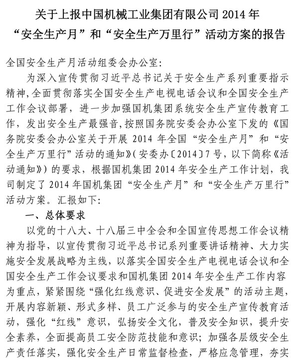 2014年中國機械工業(yè)集團有限公司安全生產(chǎn)月方案